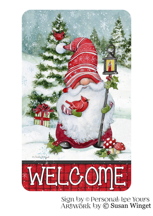 Susan Winget Exclusive Sign * Christmas Gnome Welcome * Vertical * 4 Sizes * Lightweight Metal