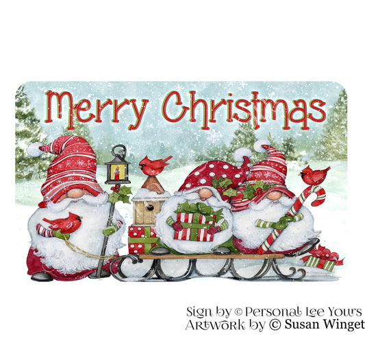 Susan Winget Exclusive Sign * Merry Christmas Gnomes * Sled * Horizontal * 4 Sizes * Lightweight Metal