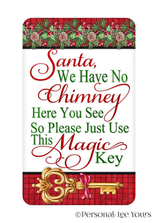 Holiday Wreath Sign * Santa's Magic Key * Vertical * 4 Sizes * Lightweight Metal