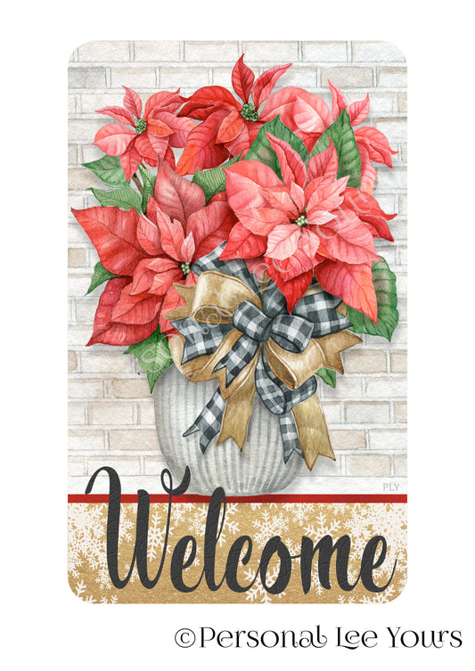 Holiday Wreath Sign * Poinsettia Bouquet * Vertical * 4 Sizes * Lightweight Metal
