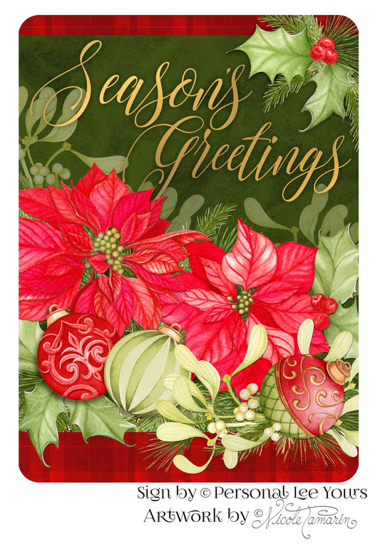 Nicole Tamarin Exclusive Sign * Season's Greetings Poinsettia Ornaments * 2 Sizes * Lightweight Metal