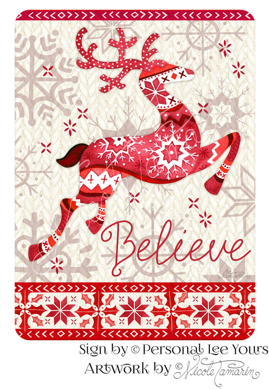 Nicole Tamarin Exclusive Sign * Nordic Reindeer * Believe * 2 Sizes * Lightweight Metal