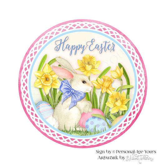 Nicole Tamarin Exclusive Sign * Happy Easter Bunny and Daffodils * Round * Lightweight Metal