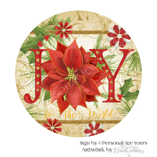 Nicole Tamarin Exclusive Sign * Joy To The World Red Poinsettia * Round * Lightweight Metal