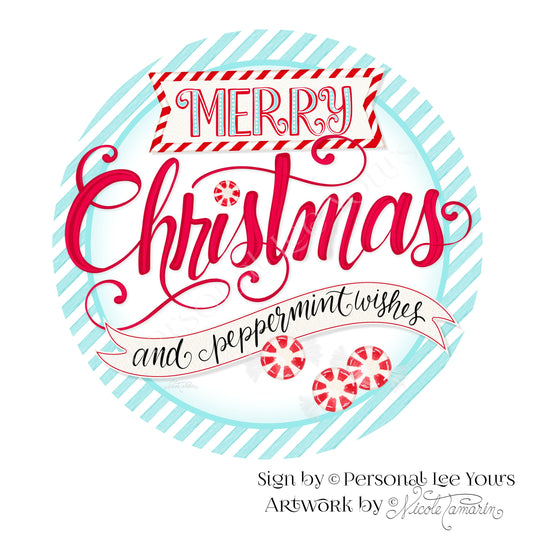 Nicole Tamarin Exclusive Sign * Merry Christmas and Peppermint Wishes * Round * Lightweight Metal