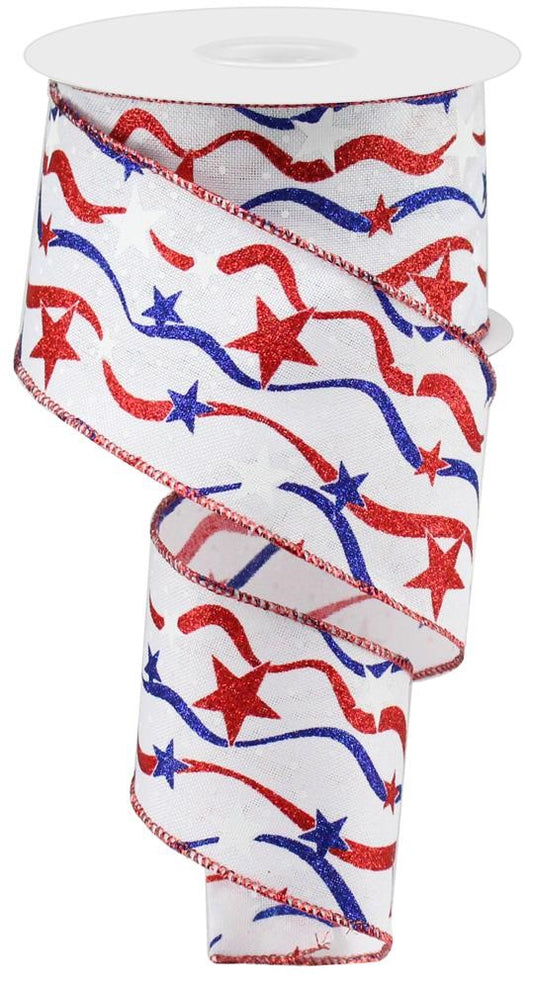 Wired Ribbon * Glitter Stars and Wavy Stripes * Red, White and Blue Canvas * 2.5" x 10 Yards * RGA167627
