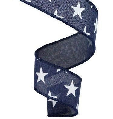 Wired Ribbon * Stars * Navy and White Canvas * 1.5" x 10 Yards * RGA111519
