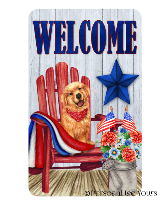 Wreath Sign * Patriotic Puppy Welcome * 3 Sizes * Lightweight Metal