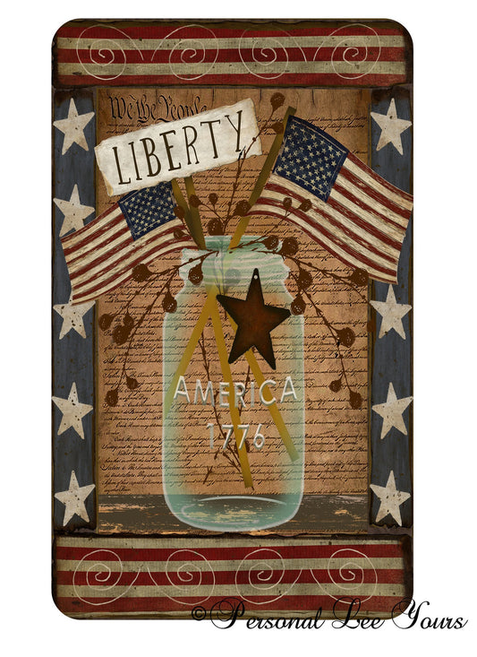 Susan Winget Exclusive Sign * Patriotic Mason Jars * Vertical * 4 Sizes * Lightweight Metal