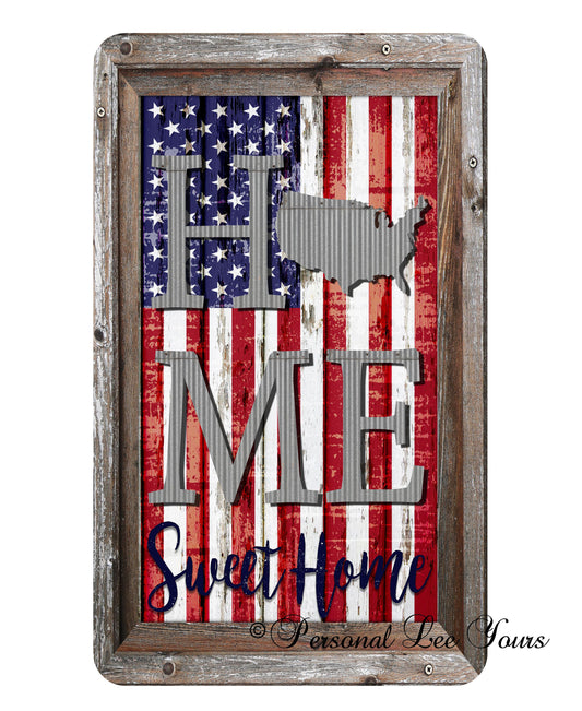 Patriotic Wreath Sign * Home Sweet Home Flag * 3 Sizes * Lightweight Metal