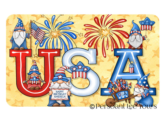 Wreath Sign * Patriotic Gnomes * 3 Sizes * Lightweight Metal
