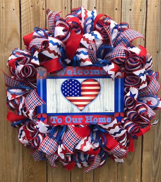 Wreath Sign * Welcome Patriotic * 3 Sizes * Lightweight Metal