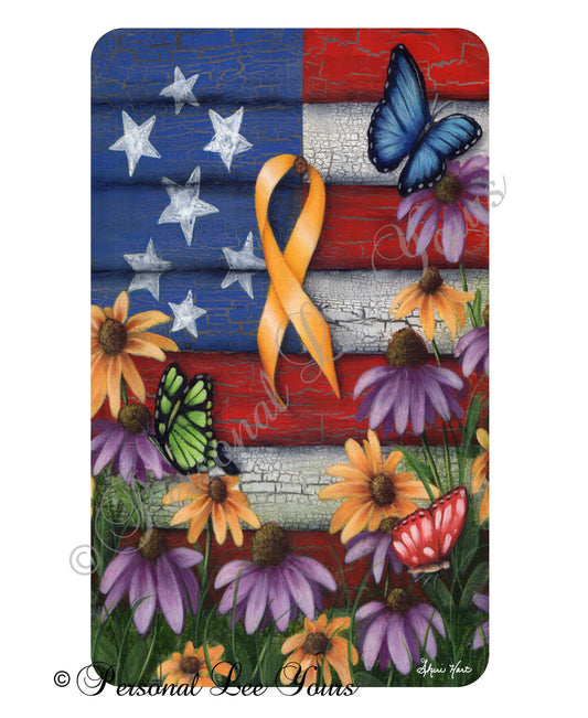 Susan Winget Exclusive Sign * American Flags Flying * Vertical * Lightweight Metal