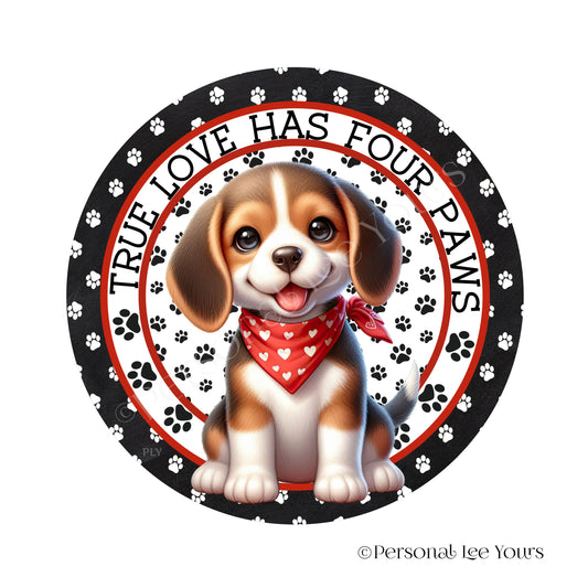 Puppy Wreath Sign * Beagle * True Love Has Four Paws * Round * Lightweight Metal