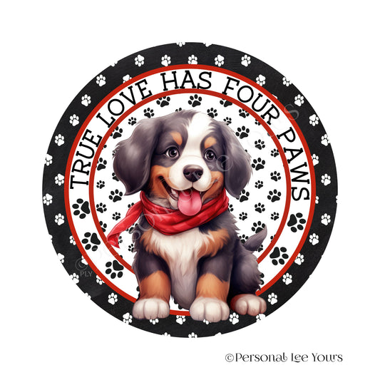 Puppy Wreath Sign * Bernese Mountain Dog * True Love Has Four Paws * Round * Lightweight Metal