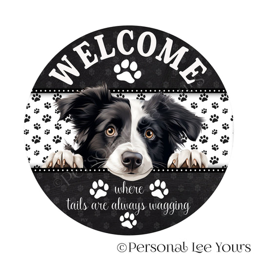 Peeking Pups Wreath Sign * Border Collie * Round * Lightweight Metal