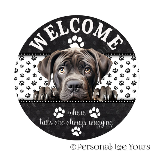 Peeking Pups Wreath Sign * Cane Corso * Round * Lightweight Metal
