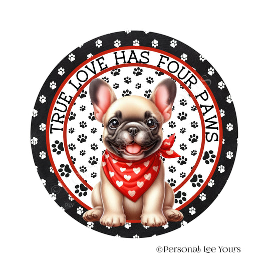 Puppy Wreath Sign * French Bulldog * True Love Has Four Paws * Round * Lightweight Metal