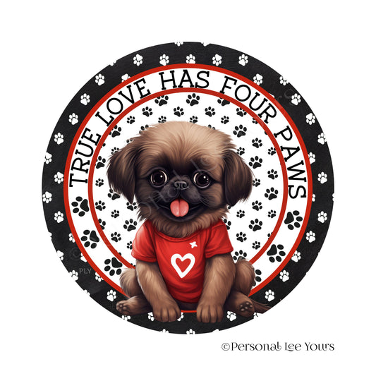 Puppy Wreath Sign * Pekingese * True Love Has Four Paws * Round * Lightweight Metal