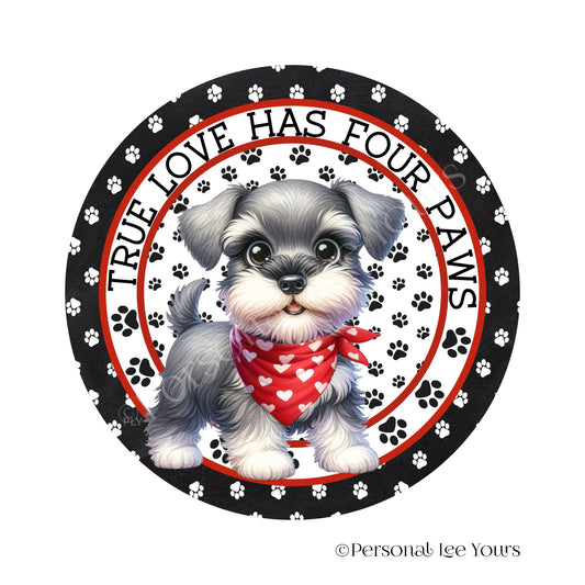 Puppy Wreath Sign * Schnauzer * True Love Has Four Paws * Round * Lightweight Metal