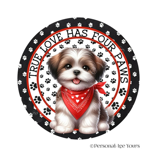 Puppy Wreath Sign * Shih Tzu * True Love Has Four Paws * Round * Lightweight Metal