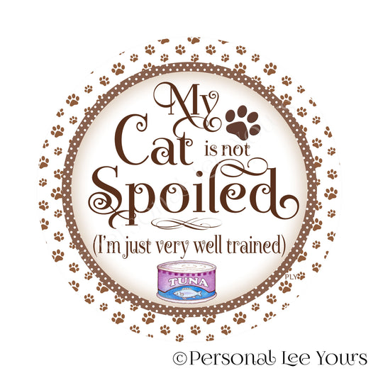 Wreath Sign * My Cat Is Not Spoiled * Brown * Round * Lightweight Metal
