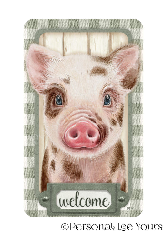 Wreath Sign * Welcome Farmhouse Spotted Pig * 4 Sizes * Vertical * Lightweight Metal