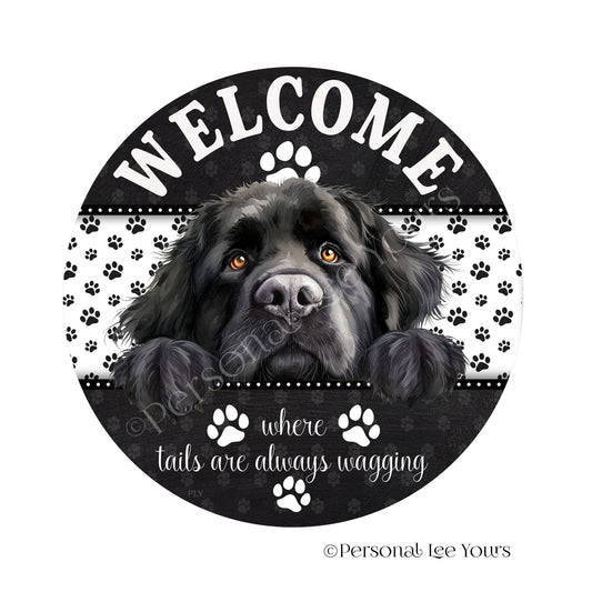 Peeking Pups Wreath Sign * Newfoundland * Round * Lightweight Metal