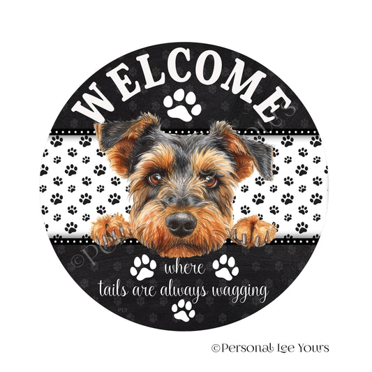 Peeking Pups Wreath Sign * Welsh Terrier * Round * Lightweight Metal