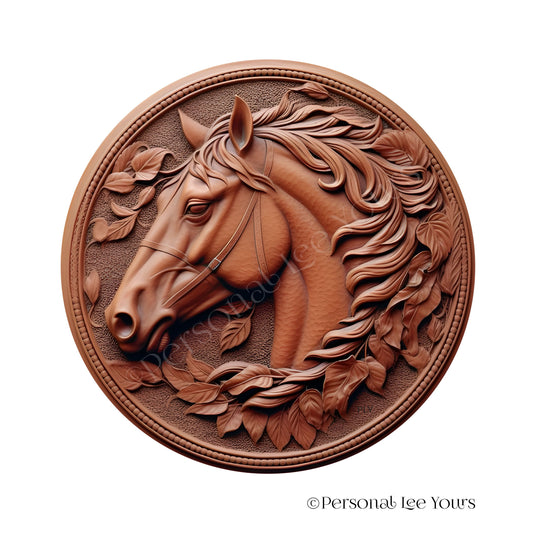 Wreath Sign * Wood Tooled Look Horse * Round * Lightweight Metal