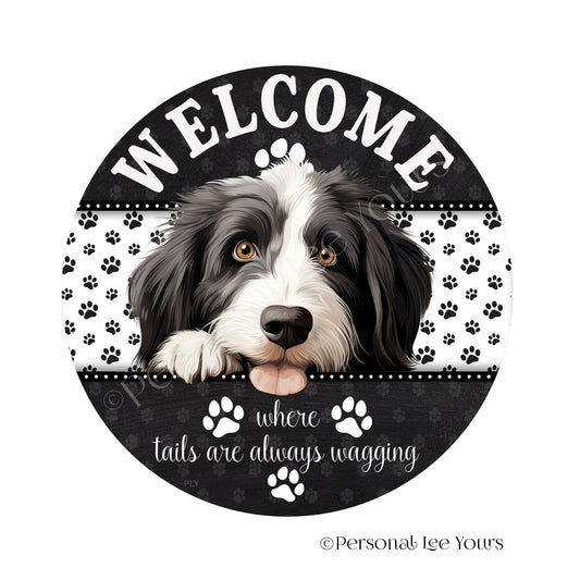 Peeking Pups Wreath Sign * Bearded Collie * Round * Lightweight Metal
