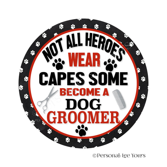 Pet Wreath Sign * Not All Heroes Wear Capes Dog Groomer * Round * Lightweight Metal