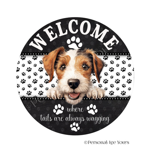 Peeking Pups Wreath Sign * Wire Fox Terrier * Round * Lightweight Metal
