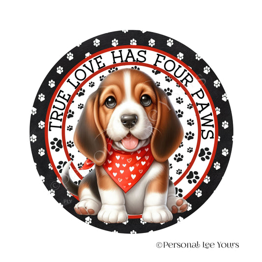 Puppy Wreath Sign * Basset Hound * True Love Has Four Paws * Round * Lightweight Metal