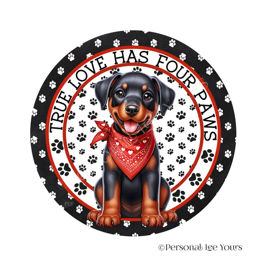 Puppy Wreath Sign * Doberman * True Love Has Four Paws * Round * Lightweight Metal