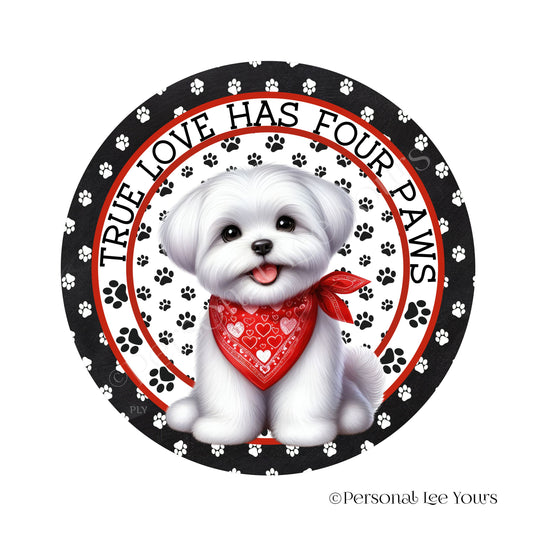 Puppy Wreath Sign * Maltese * True Love Has Four Paws * Round * Lightweight Metal