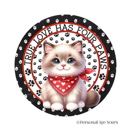 Kitten Wreath Sign * Ragdoll * True Love Has Four Paws * Round * Lightweight Metal