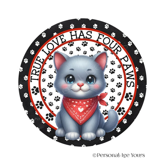 Kitten Wreath Sign * Russian Blue * True Love Has Four Paws * Round * Lightweight Metal