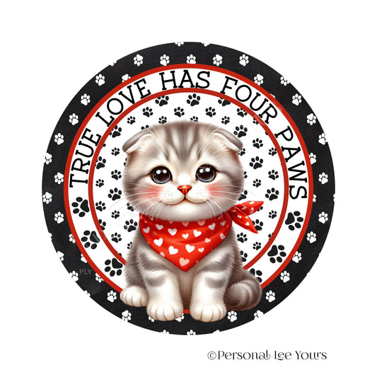 Kitten Wreath Sign * Scottish Fold * True Love Has Four Paws * Round * Lightweight Metal