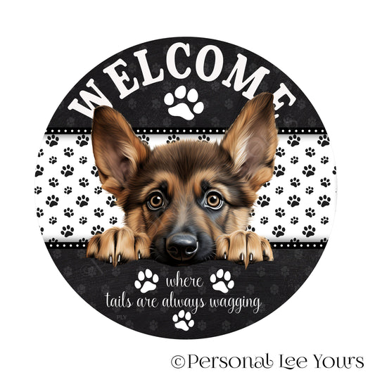 Peeking Pups Wreath Sign * German Shepherd * Round * Lightweight Metal