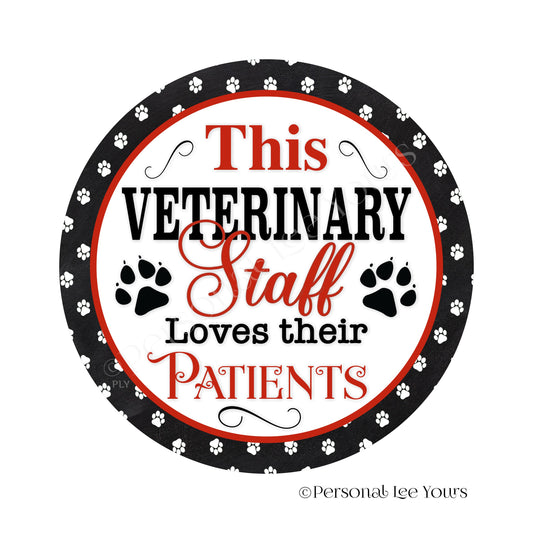 Pet Wreath Sign * This Veterinary Staff Love Their Patients * Round * Lightweight Metal