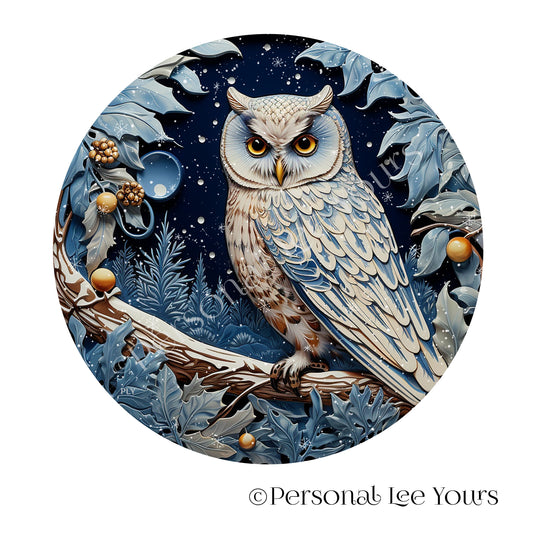 Wreath Sign * Winter Owl * Round * Lightweight Metal