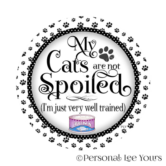 Wreath Sign * My Cats Are Not Spoiled * Black * Round * Lightweight Metal