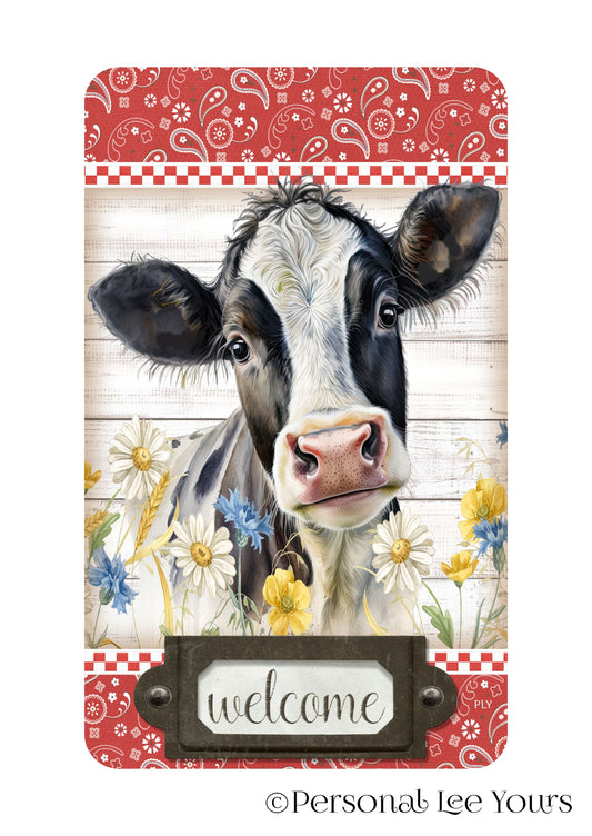 Wreath Sign * Welcome Farmhouse Cow * Holstein * Vertical * 4 Sizes * Lightweight Metal