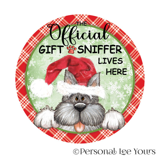 Christmas Wreath Sign * Official Gift Sniffer * Dog * Round * Lightweight Metal