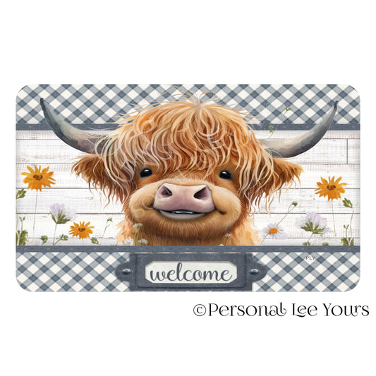 Wreath Sign * Welcome Farmhouse Highland Cow * 4 Sizes * Horizontal * Lightweight Metal