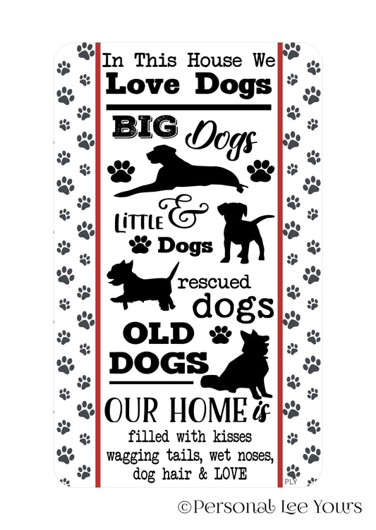Wreath Sign * We Love Dogs * 4 Sizes * Lightweight Metal