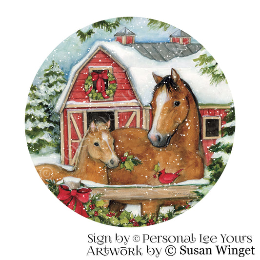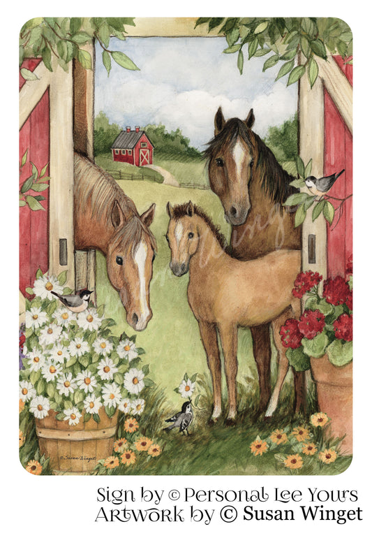 Susan Winget Exclusive Sign * The Red Barn * Horses * Vertical * 2 Sizes * Lightweight Metal