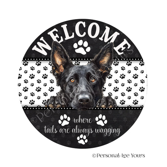 Peeking Pups Wreath Sign * Dutch Shepherd * Round * Lightweight Metal