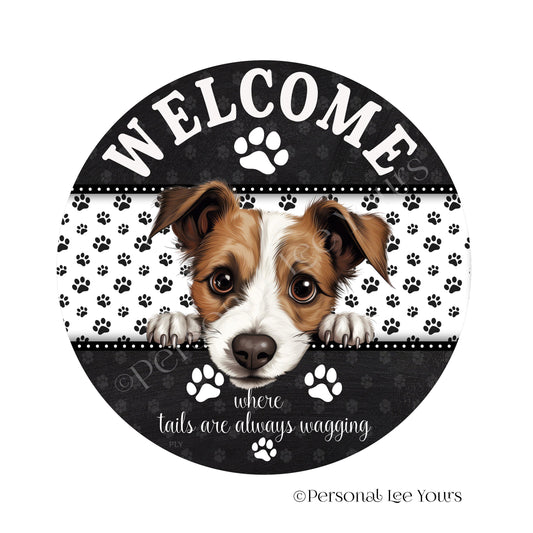 Peeking Pups Wreath Sign * Jack Russell Terrier * Round * Lightweight Metal